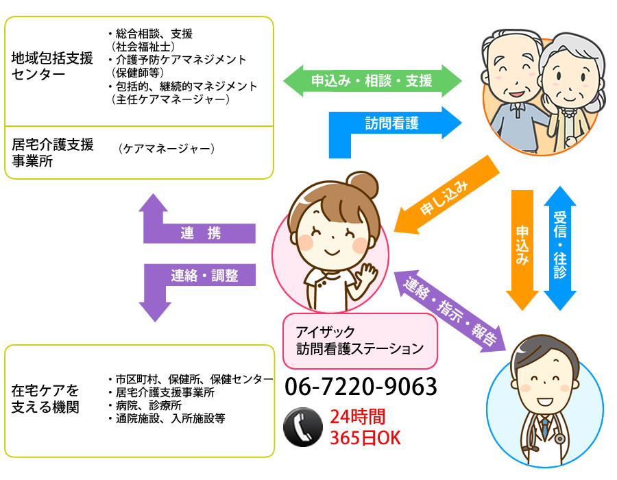 アイザック訪問看護ステーション 24時間OK:06-7220-9063